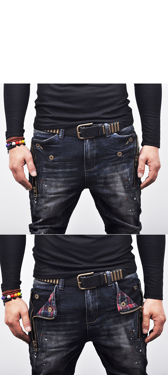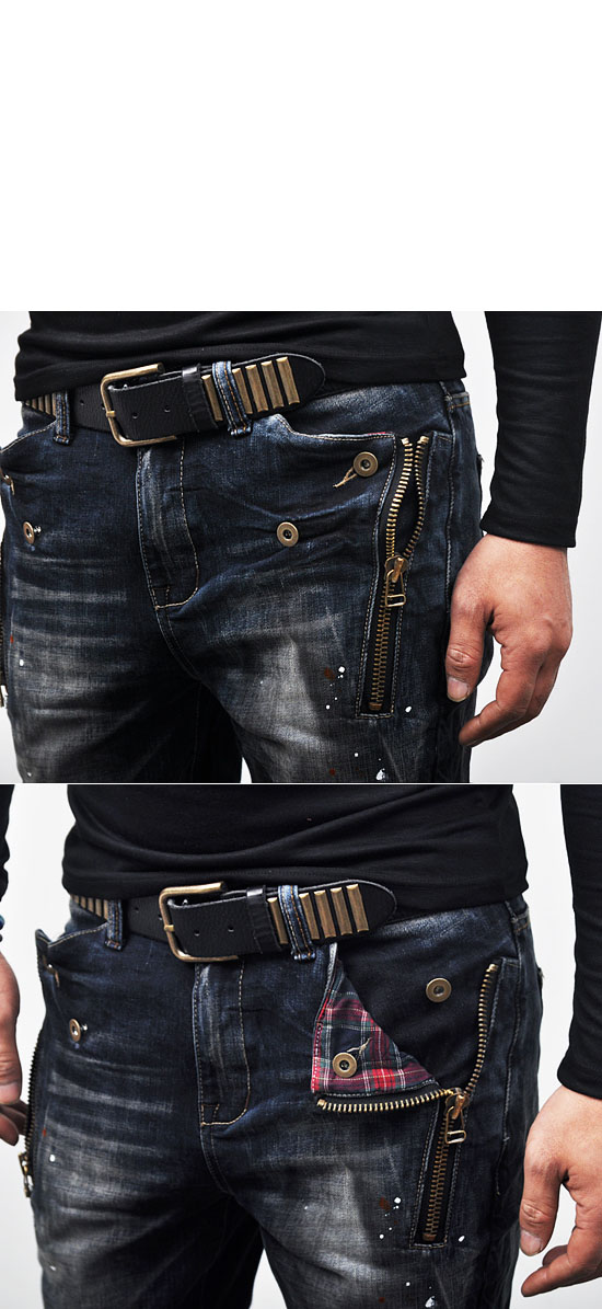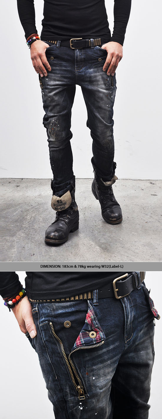 MENS STREET-EDGE CHECK ACCENT ZIPPERED MENS SEMI BAGGY VINTAGE JEANS-JEANS 115 BY GUYLOOK