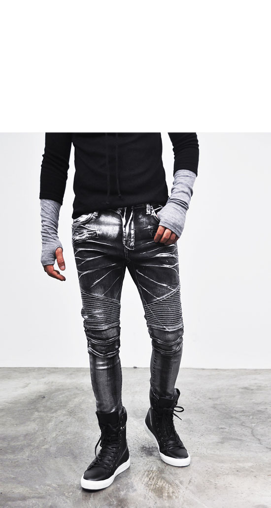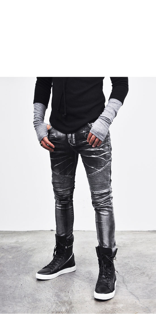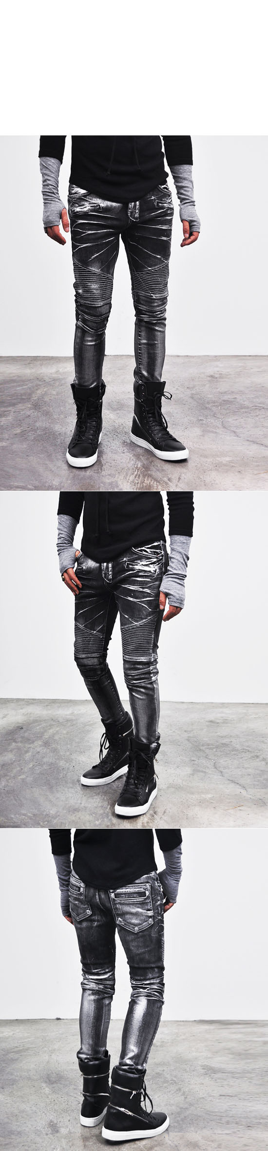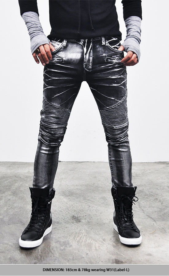 MENS POWERFUL HARDCORE WAX WASH SKINNY BIKER JEANS-JEANS 103 BY GUYLOOK