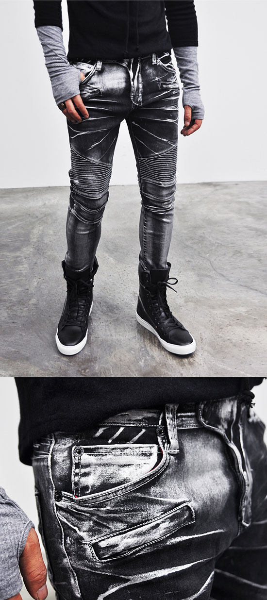 This is a seriously striking fashion jeans with an artistic display of street-edge.