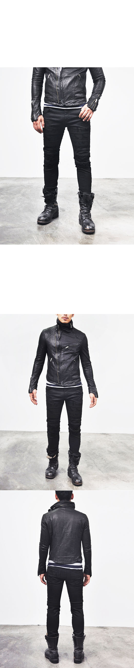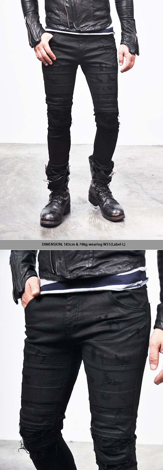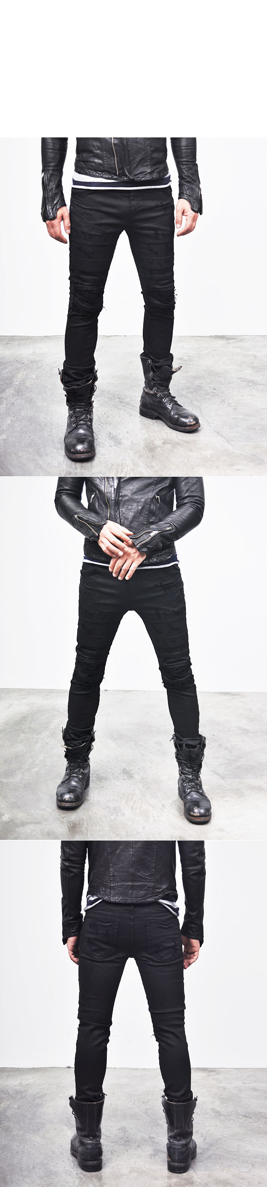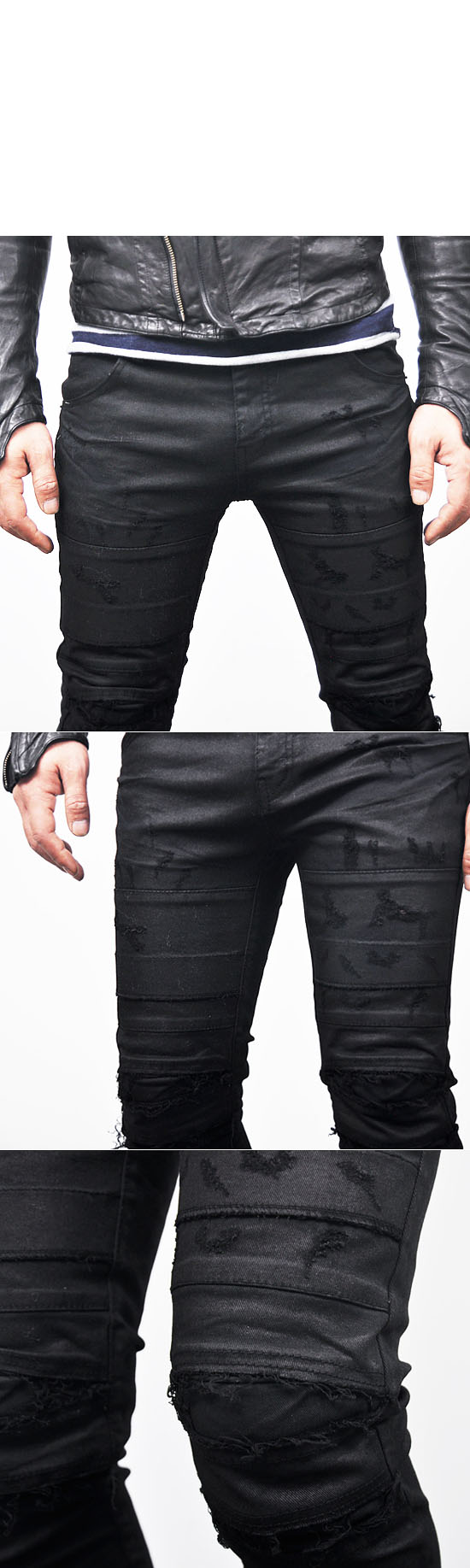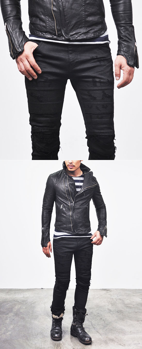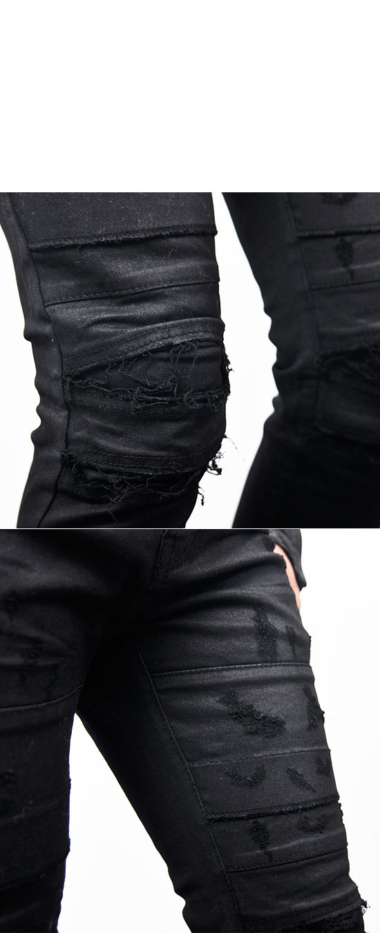 MENS EDGE SEAMING DAMAGE SPANDEX SKINNY BLACK BIKER JEANS-JEANS 106 BY GUYLOOK.