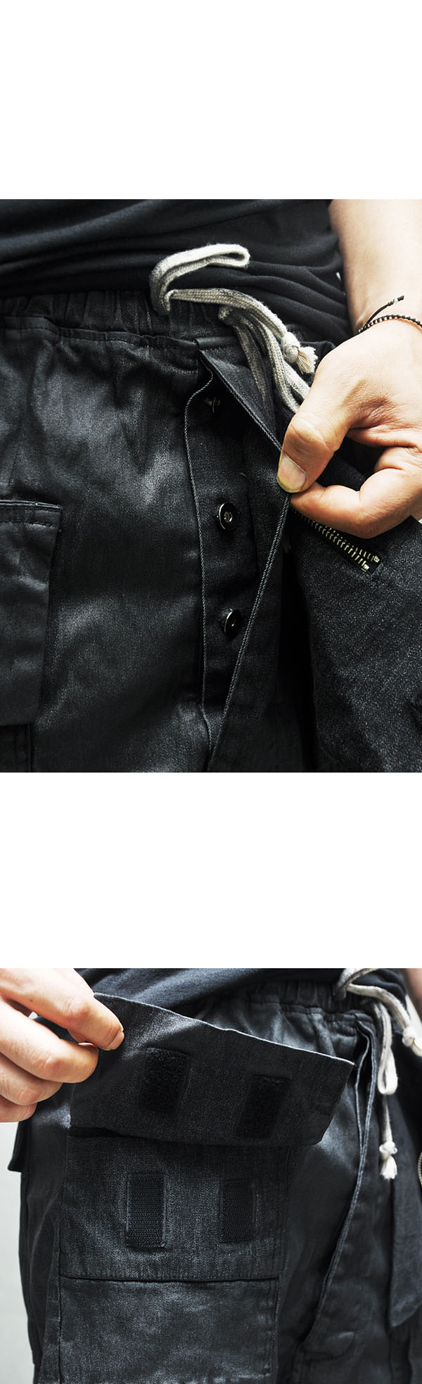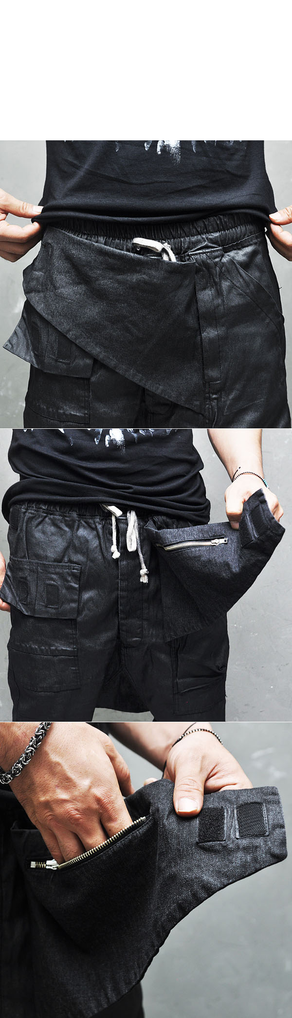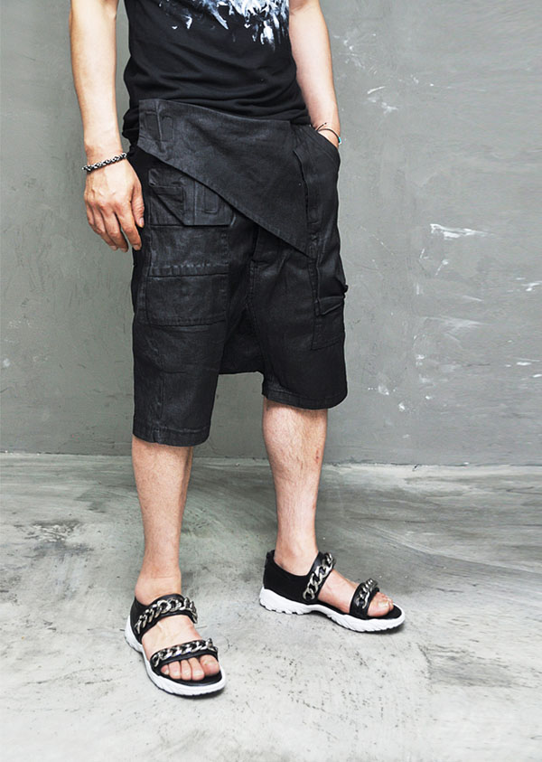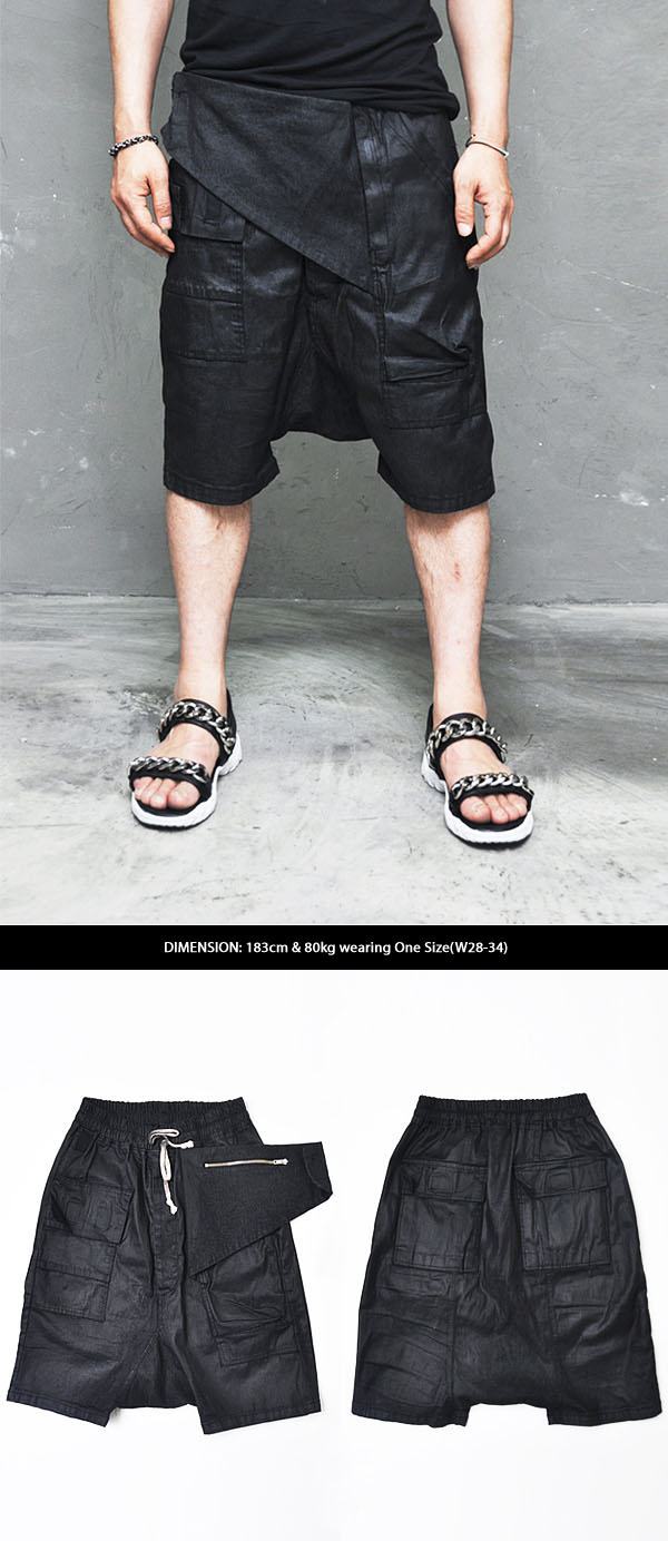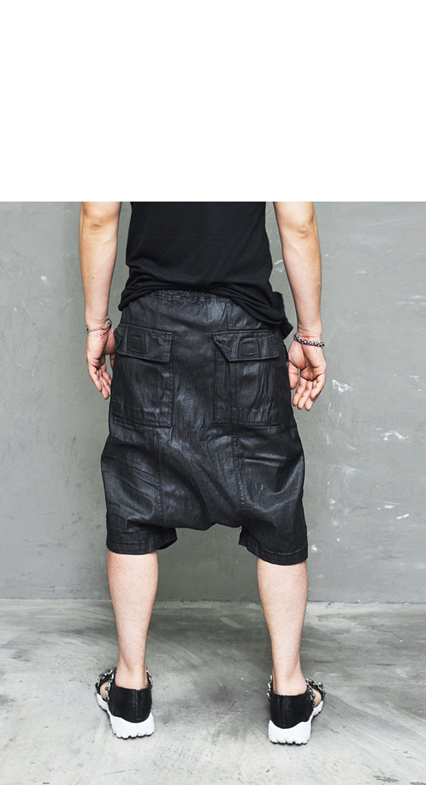 WAX COATED WRING DROP RICK BAGGY CUTOFF-SHORTS 59 BY GUYLOOK