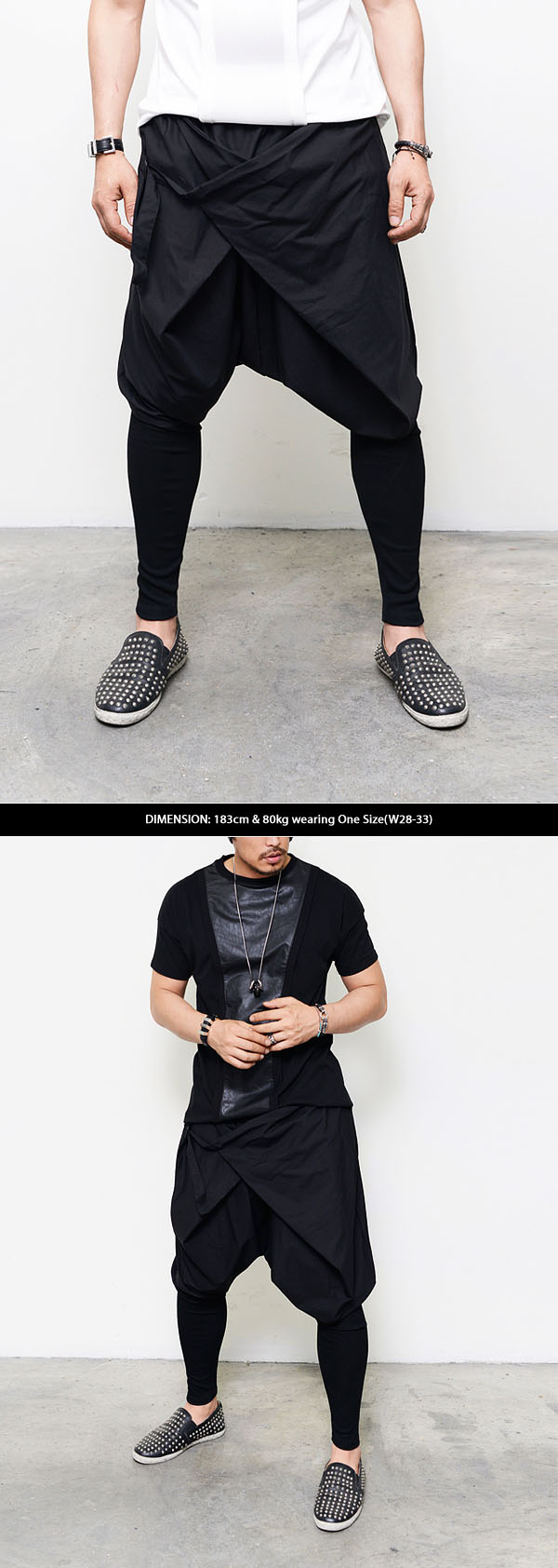 X STRAP WRAP DROP MONK LEGGINS BAGGY-SWEATPANTS 127 BY GUYLOOK